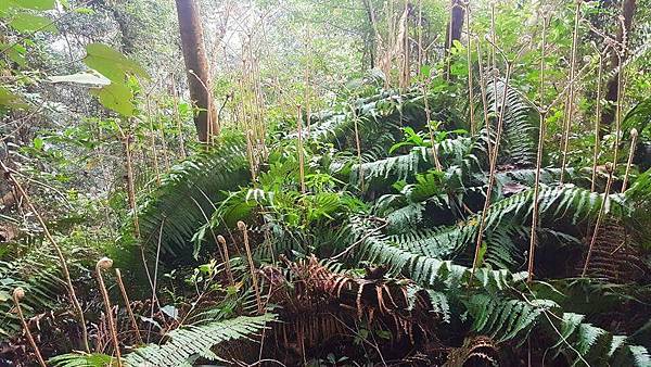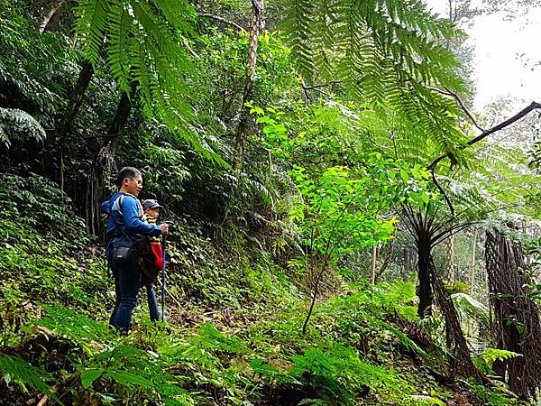 阿嗚似乎很開心的吸收森林裡的芬多精,見到登山客就對人笑,還遇到一個講著善意謊言的登山客一直告訴我們轉個彎就到了不遠